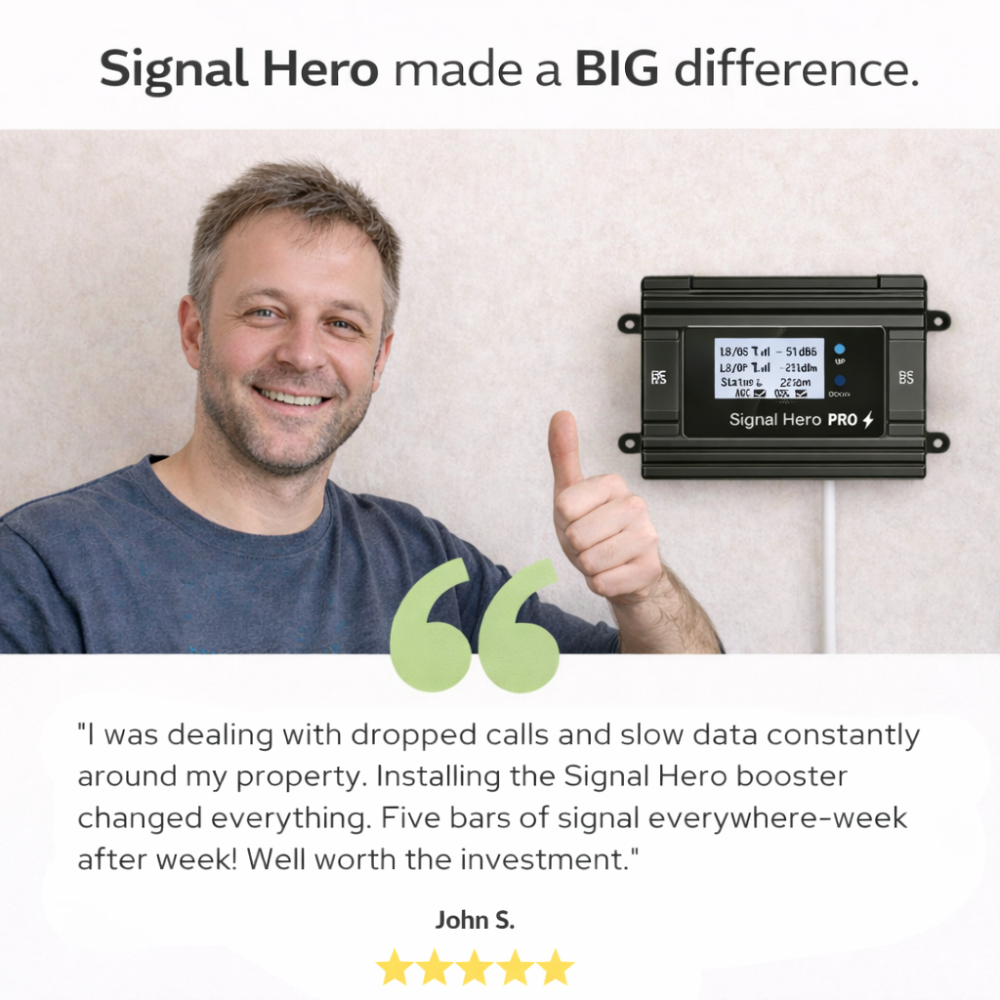 Signal Hero mobile signal booster is the only working solution if you have a weak signal and dead zones. It helps to improve signal strength so you can access the internet more quickly, and stream videos without buffering.