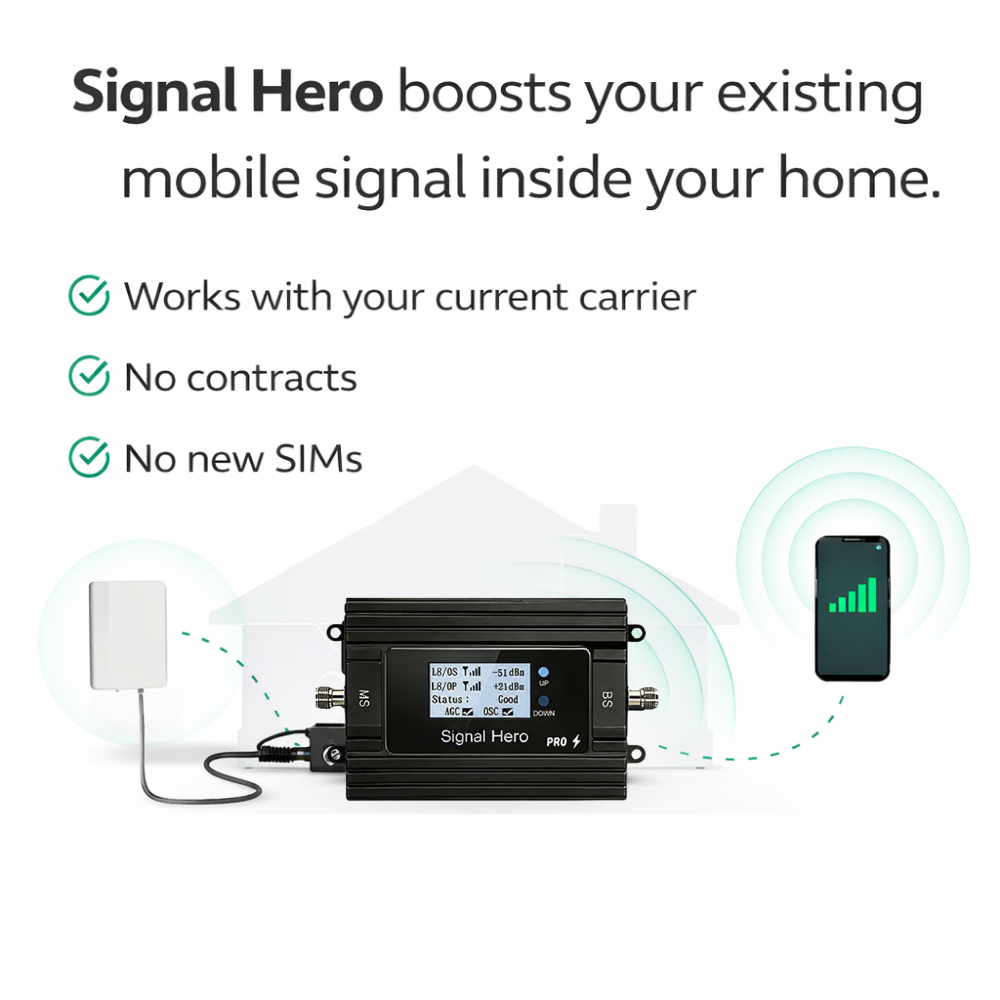 Signal Hero mobile signal booster is the only working solution if you have a weak signal and dead zones. It helps to improve signal strength so you can access the internet more quickly, and stream videos without buffering.